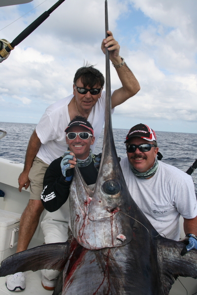 Besides sailfishing, we have also been mixing it up with some tarpon fishing as well as a couple of swordfish trips. We have done several evening tarpon trips and have been successful on all of them but one. The best night we had we caught 4 tarpon and the biggest one was about 125 pounds. On one combo sail/tarpon trip, we had a very slow afternoon with the sailfish and then came in to do our tarpon portion of the trip. The tarpon fishing started slow but as soon as the sun set, the tarpon started to bite. Every drift produced a fish and by 8:30 we were about to call it a night but decided since the day bite was so slow lets do one more drift for another tarpon. Well we hooked one and boy did that fish want to fight. We ended up fighting that tarpon for almost 1hour and 45 minutes. That tarpon was estimated at 125 pound s and after a successful release we definitely called it a night.