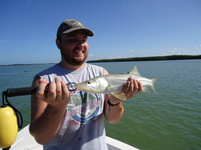 Our first few baits were eagerly attacked by spotted sea trout all just short of keeper size. It wasn't long before we had our first snook on a chunky 25". It went airborne numerous times finally tossing the hook back at us.