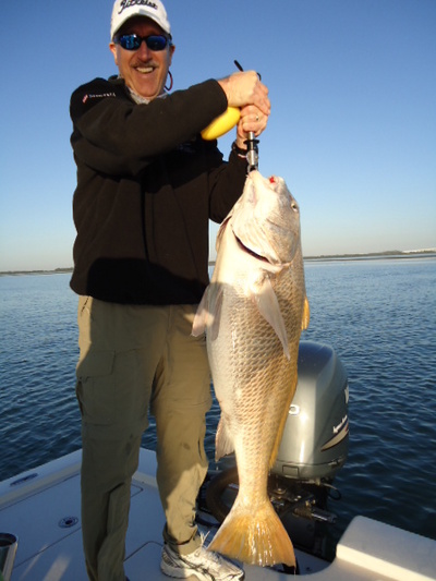 Captain Steven's anglers all want a shot at catching a 50 pound Drum on light tackle. Sight casting to hundreds of Drum tailing in 3' feet of water is an amazing sight. The Tower on my Pathfinder is an ideal platform watching for the giant tails of the big push of water signaling the school.