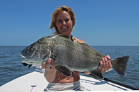 The following day, I had the pleasure of fishing with Simons Welter, a fly fishing guide from South Carolina. The day started with favorable winds that steadily increased throughout the day. We started the day targeting some schools of redfish tailing in very shallow water. We found the fish to be extremely spooky and uncooperative. We moved out a bit deeper and found some black drum tailing and mudding. Using a tan shrimp pattern and a black crab fly, Simons hooked four drum and landed three.