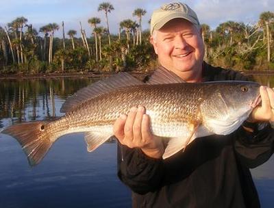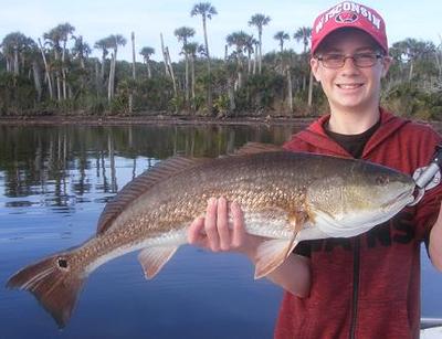 We are having an early Spring 2013 here on Mosquito Lagoon Florida. February's water temperatures have been mostly in the mid to upper 60's, with a few colder days mixed in. Spring things happening early include Manatee sightings, and Jack Crevalle, Ladyfish, and Mullet coming up from the south. With the water still cool, most of the Redfish are still in schools, but many are broken up into smaller groups on the warmer days. Live finger mullet have been one of my best baits when available, also live shrimp, soft plastic DOA shrimp, jerk baits, and CAL jigs. Local clients Rick, son Ethan, and friend Mike had a great morning recently with small schools of Reds running along a beautiful Palm Tree lined shoreline with mirror like water, they caught and released 6 Reds up to the 29"er caught by young Ethan.