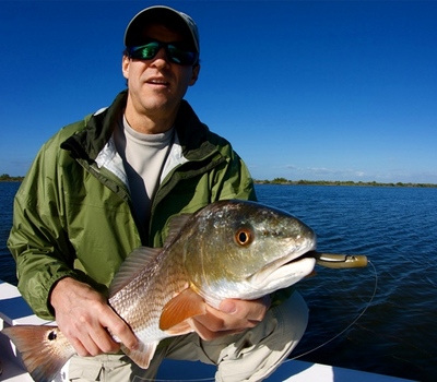Mike had the hot hand, as a while later he made a beautiful cast in front of a cruising fish. The fish ate the CAL tail and a few minutes later 25 inches of redfish was being photographed. It was also released.