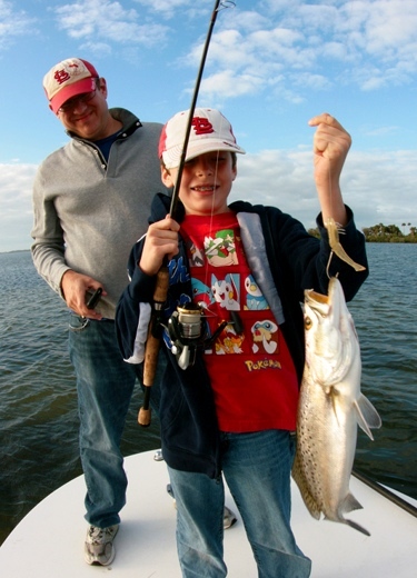On a windy Friday morning Bob from St. Louis and his two sons Ben and Erin joined me for some Mosquito Lagoon fishin'. Kids on board, any fish will do!