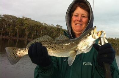 Chad, John, and Cheryl from New York State recently had a great fun trip with me on a cold morning catching 18 fish on the flats, 9 Redfish and 9 Seatrout most mid to upper slot size fish, Aunt Cheryl was trilled to catch the largest Trout of the trip, gloves and all*************