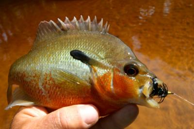 There weren't a lot of sunfish there. Usually as you walk the banks you can see a lot of them. I got six or eight, all redbreasts. One was the biggest redbreast I've ever caught. But I didn't get a stumpknocker, nor a bluegill. Kinda weird.