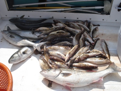 We wound up with Around 50 ling, 1 keeper striper, and kept a couple blues for friends..
