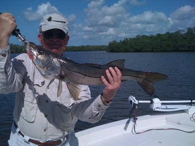 I had four charters this week and only had to reschedule Mondays due to cold weather, dirty water and 25knt winds. Tuesday I fished Estero Bay and pilchards were easily netted offshore. The hard ENE winds didn't let the water come in much and I was limited to where I could fish. The water also went from 87 on Friday to 69.2 on Tuesday. I knew the snook bite would be off so I concentrated on some deeper rocks walls and caught a good amount of gag grouper to 20". We also got a nice 27" redfish and some bluefish fishing the bushes. Wednesday I was back down in Naples and again pilchards were easily netted. I started out in one of the local passes and didn't leave for two hours. I was the only boat fishing it and we easily caught 40 snook to 27". It was one of he best bites I have seen in there all year. I left them biting to try and find some trout in the deeper mangrove shorelines and couldn't get away from the snook. We finally got a nice keeper right under 33" on a big pilchard. Today I fished Naples again and it was another great day on the water. I had a regular client on the boat Tom McKenna and he put a hurting on the snook in the pass. He easily caught 20 nice fish in about an hour. We made our way into the backwaters where he caught snook to 31" and a mess of mangrove snapper.