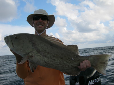 Capt. Rich Knox of Absolute Florida Flats Fishing and guide service reports very good nearshore reef and wreck fishing this week with good catch's of Gag Grouper, Red Grouper, White snapper, shark's of a variety, even seeing some nice sized Bonito and Spanish Mackerel on there 1/2 day fishing trips. Fishing the hard-bottom from 30′ on out to 50′ we encountered all the above mentioned species also hooking a nice Sailfish on a live pinfish, on a spinning tackle flat line sitting in the rod-holder while dropping bait's to the Grouper and snapper. The bill-fish, a good size Sail in the 60 lb. range jumped, ran off line, jumped some more completely around the boat 360* and then ran like a trophy King-fish toward Texas with the tide until his powerful tail either wrapped up our line or just wore it out ( 20lb.braid ) the battle lasted about 25 minutes until the badly fr-aid line broke, the fish even got into the mono backing before breaking us off about 100 yds. she was all lite up Blues, Purples, Gold and full of vigor, what an surprisingly wonderful thrill while dropping baits for good table fare. All in all over 50 fish day's, and it beats the heat this time of year