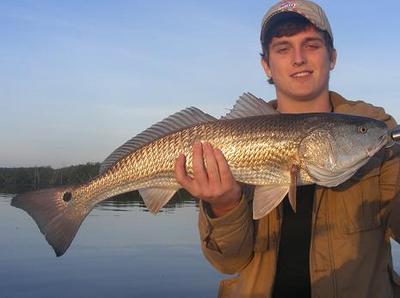 Welcome to 2013, we have had a great year of fishing here on Mosquito Lagoon Florida, ending with a fun December, we had winter cold conditions, with water temps of 55"F, but the warm spell the first week of January has raised water temps back into the 60's. Our sunny pretty winter days are prime sight fishing with clear water with tailing fish and small schools of shallow water Redfish, select size live shrimp being my bait of choice for sight casting Reds. Seatrout are also schooled up in winter, difference being many of the Trout schools are in deeper water on drop offs and in slough holes, artificial lures work great for them, jigs with Gulp shrimp or soft plastic tails to get it on the bottom where the fish are in cold water. Here is young Ethan with a great 29" Redfish he caught first thing in the morning last week, sight cast from a school we were watching swim around in front of us at our first stop.