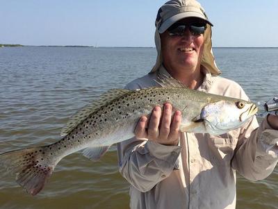Regular clients from Central Florida came an their annual summer trip with me, staying shallow for Reds the first couple hours catching a few good spot tails, then switched to Trout catching about a dozen specks and a few Jack Crevalle also stretched their lines. Bridget had best luck on the Redfish............................