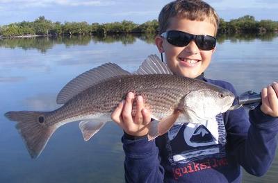 Eleven year old David sight cast this Red from schooling fish on a beautiful slick calm morning while on a trip with me by his dad and grandfather. We caught a few more from the very visible schools which were cruising around in front of us as I poled the boat in position for the guys to cast their shrimp in front of groups of 20 to 50 Redfish, a wonderful sight to see. After the breeze picked up we targeted some deeper drop offs with artificial jigs and caught about a dozen more smaller Reds and about 30 Seatrout.