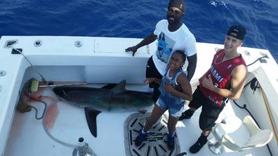 One of the interesting things about the charter fishing business is that you never know who might show up for some angling excitement. This afternoon, NFL quarterback Michael Vick showed up and decided he wanted to go out on the Lady Pamela II and catch something big. The decision was made so we went straight to shark fishing out in 350 feet of water off Ft. Lauderdale. We hooked up the big one Michael was looking for within the first half hour, and he spent the next 45 minutes reeling in a nearly 10 foot long reef shark. I think Michael had a good time on the water and we sure had fun on a pretty cool day of fishing!
