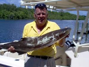 The photo shown is of angler Gregg Bedell, with a 49 inch, 28 pound cobia, caught on a recent Fishbuster Charter offshore about 40 miles from New Pass.