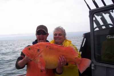 I am attaching a picture of the yellow-eyed rock fish I caught. It was great fun. Thanks again, we will be back next year and have advised all our friends of your charter company. Your captain and his mate were wonderful.
