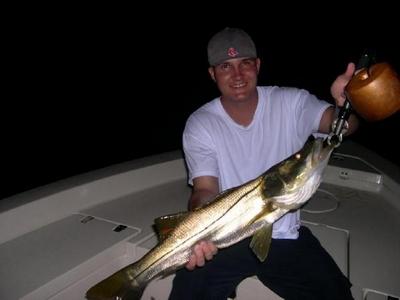 As you have heard me say before this time of year I like to hit the beach for the last 90 minutes of sunlight then move into the canals. My clients like the scenery, the cooler temperatures and the consistent action. On occasion nights can be frustrating watching numerous snook that won't play. Last night they cooperated with a steady bite. White baits and pinfish were the bait of choice. Double hookups were commons and several toads were lost in the barnacle encrusted pilings. Watching a snook inhale your baits as good as it gets! I fly line most baits and have my anglers toss away from the lights and into the shadows. On occasion I will add a small split shot weight to target deeper in the strike zone.