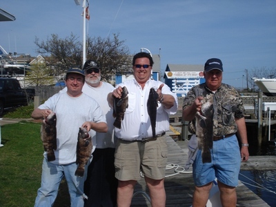 Had an Open Boat Blackfish Trip Today with 5 anlgers.... Finally got Steve Seneff aboard after about 4 blowouts along with Phil Wreckfish, Bob Bates, Al Belmont and Delaware Dennis...