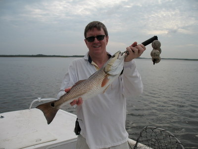 We had an hour or so left when that bite stopped so we headed to the creeks to try the Red fish. Throwing mud minnows under small corks along the grass was the plan.