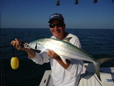 Bonita action on Tampa Bay is red hot! The ship channel between Egmont Key and the Skyway Bridge is alive with numerous schools of these amazing speedsters. On calm days these Bonita are easy to spot just looking for the boiling water and diving birds. The schools disappear as quickly as they appear into the deep waters. Just sit tight they will come back up.