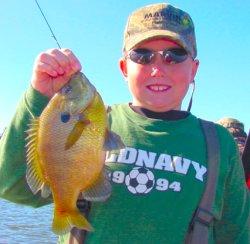 Panfishing has occupied a lot of my mid day fishing time this week and I'd say that it's getting easier to locate schools in open water every day. On Wednesday, we were able to locate several schools of Crappie and Bluegills all within a few hundred feet of each other. This is a big improvement over a week ago when there were still lots of fish nearer to the weedline and tougher to pick up on the Lowrance. Crappies have been most active earlier in the morning and each day we've found that almost all of our Crappie catches have come within the first couple of hours in the morning. After that, the Bluegills keep the action going for a couple more hours until about lunchtime. Mid day fishing is slower, but some fish continue to bite. The action picks up again a few hours before sunset and the peak is an hour or so before dark.