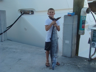 I've also noticed that this kid always brings a fishing pole along with him. Well just after Travis and Renee left the dock this sail boat the Spirit Of Lauderdale backed into the dock and I noticed all this commotion behind the boat. As luck would have it while they were just sailing around Will had set out a bait and hooked into a fish and landed it.