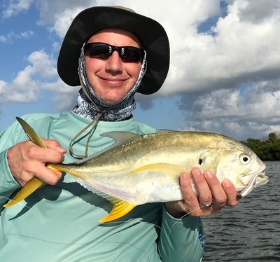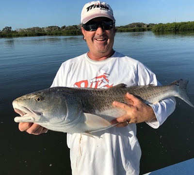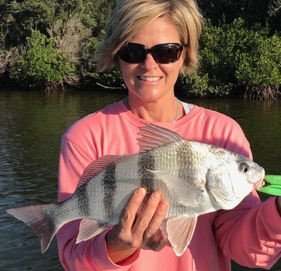 We have had our first cool fronts of the season lowering the water temperatures to the low 70’s, north winds play a big part in the water temps dropping early in the season as cooler water from further north is pushed down Florida's coast. Fishing patterns change as the water gets colder, less baitfish in the water as most goes south for the winter, local Lagoon game fish begin to school up, including Redfish, Trout and Black Drum, some of these schools we find in shallow water on sunny days as the skinny water warms a little, others are bunched up in holes and off the edge of drop offs and channels. Winter fish Sheepshead and Bluefish become more numerous as the water gets colder giving us some different fish to catch in the cool months. The subtropical inshore game fish Tarpon, Jack Crevalle and Ladyfish have mostly already moved south, still catching a few but noticeably less the last couple weeks, when we have had big schools of Jacks about 5 lbs surface striking with white water crashes on baitfish making for great sight fishing cast lures or bait and instant hook ups. A few large Redfish make their way in to Lagoon Backcountry after spawning at the inlet near the ocean in the fall, Brian from California caught one with me last week at 38” a great battle on my fun light tackle used in the back waters……………..