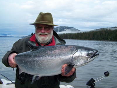 The photo of the week shows me with a beautiful, bright Douglas Channel Winter Chinook landed on Saturday, January 16, 2010. The fish weighed 20-pounds. I was fishing with Ron Wakita and Wes Owens. We also caught a few Dungeness Crab. Click here http://www.youtube.com/watch?v=7zr0yHthttQ to watch the 6 minute video clip. More information about this trip below:
