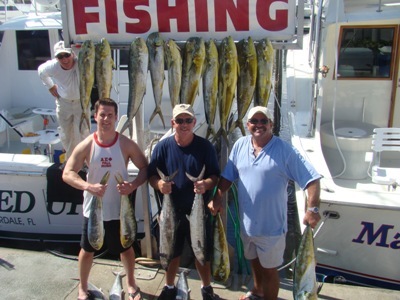 Once we got back to the dock we were eager to hang up these fish for a picture and we were a bit surprised to find that we had caught 14 8 to 12 pound dolphins along with our limit of kings. Not a bad day of fishing.