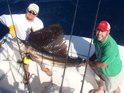 Finally Ben got this nice sail fish to the boat. We got a few quick pictures and a quick measurement to have a replica trophy made of their catch and watched him swim away in great shape. Perfect catch and release great going guys.