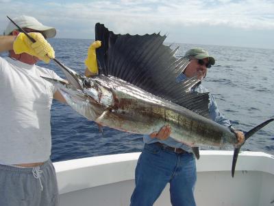 Finally the high winds and seas have gone and the Hooked Up crew is fishing again. We had 2 charters on the 6th; we started the morning fishing with Jim, Charlie and Chris from Texas and the fish were biting on the troll. These guys all got into the action landing bonito's, 6 kingfish, 3 barracudas and a jack, not a bad morning of fishing. Our afternoon charter was with Socks and Parksy and they wanted to go after something big so we set the live baits on top with the kites and dropped the dead baits on the bottom and set in for the wait. It didn't take to long before we got a bite and the guys did a catch and release of a blacktip shark and then to top that they also did a catch and release of a really nice sailfish! Way to Go! On the 8th the Hooked Up was joined by KC, Evan, and Brandon from NH. The seas were a little rough but these guys hung tough. Since it was rough we stayed close and trolled the reef and these guys brought in a couple of dolphin fish, 2 skipjacks and a barracuda and then we had a first for me, we caught a spinner shark while trolling, you just never know. On the 10th, Andrea from MA fished with the Hooked Up team. We started the day out trolling offshore for dolphin and were successful, Andrea brought in 3 nice sized ones. After discussing some options with Andrea we decided to head back closer to shore and try for a sailfish, Andrea had never caught one and wanted to give it a try. We set up with the live bait in the kites and it wasn't to long before we got the bite and Andrea was in the chair fighting a nice sailfish. The fight went on for quite a while but in the end the sailfish won, getting free right at the last. Good fishing Andrea, you will get him next trip.