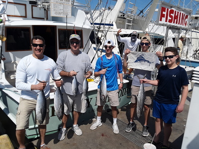Jim Carroccia and his family chartered the Top Shot Sportfishing charter boat team for a private deep sea charter boat sport fishing trip in Fort Lauderdale, FL. We had clear skies with pretty blue waters with some scattered weed.