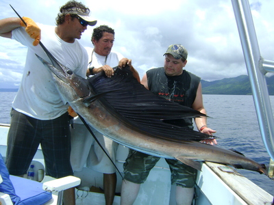 at 07:30 a.m the tuna fish boat leave from playa flamingo with 3 persons aboard, off shore looking for billfish.