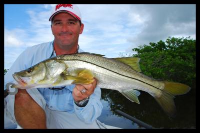 OH My, where do I start...Well today was by far one of the best days on the water in a long time. Not just for the impressive numbers of fish caught but the many (quality) different fish caught as well. We started out on a flat that holds Redfish to look for a school I fished last week, we quickly found them and started fishing them. The fish were about 20 pounds and about 100 of them as well. We had 3 go after our top water baits but missed the bait and soon after spooked off into the deeper waters to not be found again for the day. We moved to location 2 where we then wore them out. It was Redfish after Redfish with many double hook ups. As we continued to catch Reds we watched in amazement as Tarpon rolled around us, Big Trout also managed to eat a bait or 2 as we put a 5 pounder in the boat. I then started noticing Snook roaming around as well but we had the wrong bait for them. Later as we moved down the bank I located some nice Snook bait and netted up a few for just in case. As we moved to get back on the fish we found a large school of 30 pound Black Drum, but we could not get them to eat.I went back to where the Snook we spotted earlier was and soon after we now had a Snook at 5 pounds in the boat. Lets just say the fishing was off the hook today. I love these next few months and the bite will only get better.