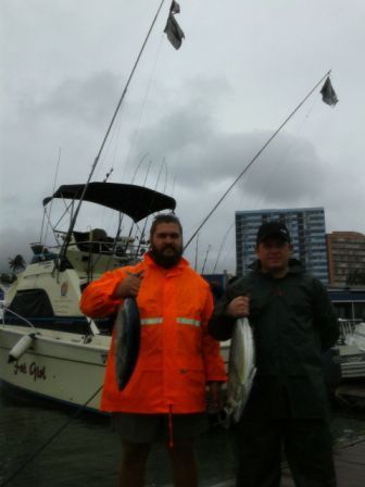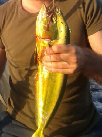 Saturday was overcast and raining and we had 4 guests from up country as this trip was part of a bachelors party weekend, they were happy to go fishing in the rain when we gave them an option to move the trip to Sunday and surprisingly they were sober for a bachelors weekend, am sure they did not want to go fishing on Sunday with their plans for Saturday night. LOL. The barometer was very low and expectations were not good. For all the efforts we ended up with 2 Oceanic Bonito (Skip Jack) and again got a tiny Dorado which we released to get bigger. We also lost a decent size dorado at the boat and had a big strike but no hook up.