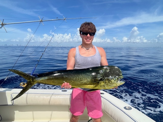 Another good option when using live Ballyhoo is heading offshore and casting live baits to Mahi Mahi. The best part about fishing for Mahi Mahi in Fort Lauderdale is that when presenting a live bait to a Mahi Mahi, there's a 99% chance the Mahi will eat the live bait. They are programmed to eat anything and everything, especially when a live bait is swimming right in front of them.