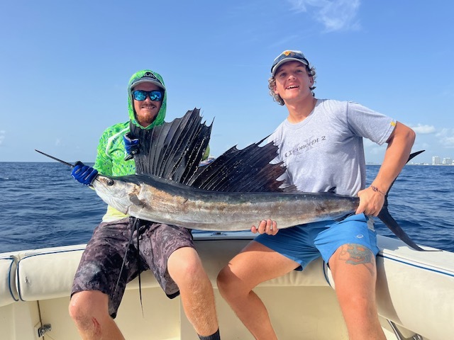 A Sailfish on light weight spinning tackle is a very exciting fight. You will get more action from the Sailfish, and the angler will enjoy the fight more from spin tackle. Spinning tackle gives the angler the ability to stand up and fight the Sailfish with a fighting belt, and the lighter lines just gives the angler a better fight.