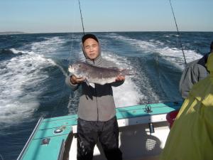 Fishing was a little tough today Chin, Kang and theier guys were out along with Donald. Donald was High hook with 12 keepers Keeping his limit And had a nice 8.5 lb fish his personal best. Chin and his buddies had 27 keepers between them Chin had a fat 9.5 lber taking the pool. Am was slow we hit 3 drops with no life then had a short spurt of good fishing and picked the rest of the day. Very few shorts today maybe a dozen but the size of the keepers improved we had a good number or 5lb fish today.Me and John had anoter 7 between us for a 48 fish total.