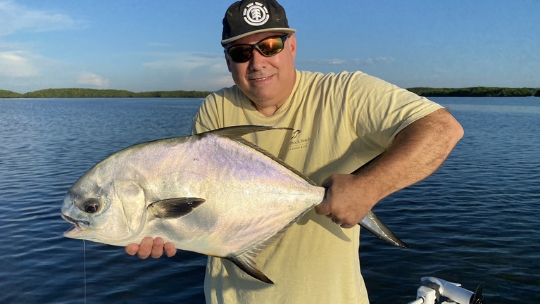 There are times when you have to tell someone how it is and I had to do just that this morning. See, I had Alex and his brother Bombino onboard today for a half day of bonefish and permit. These brothers had never fished the flats before and never fished for bonefish and permit. We had the summer morning we are supposed to be having every day, absolutely calm with zero wind in the morning. I took them to a permit spot and it didn't take long for the tails and wakes to show. A few schools of permit waked and tailed around us but I couldn't get them in position in time as the permit were moving quickly. Finally we got our first shot at a school of waking and tailing permit and Bombino placed the silver dollar sized live blue crab just right and we waited. As I turned to look at another school I hear a zing and Bombino yells, "I'm on!" and on he was. After a long reel sizzling fight Bombino landed his first permit on his first cast on his first trip. Dang man, that crazy! I explained to him exactly what he just accomplished and I still think it didn't quite sink in. A few schools later his brother Alex made a great cast and hooked another permit. A long run later Alex's permit came off and we were 1 for 2. We wrapped up the trip taking a few more shots and ending fishing for snook.