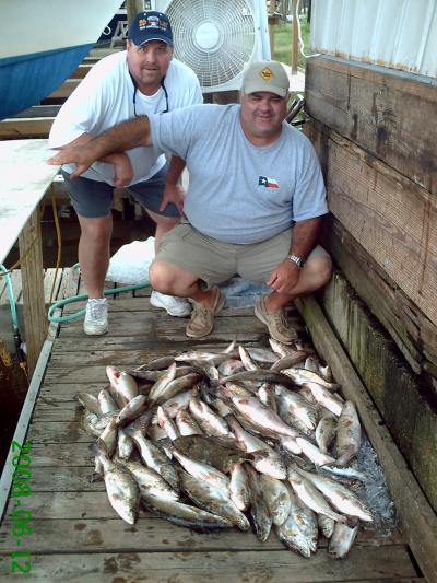 One stop shopping Thursday on the Beach. David and Young were my guests for the day. Armed with a well full of Campo's live shrimp we headed to the same spot I did well at the day before. Once again the Trout were eating up. We even caught a few on Top Dogs for the fun of it. By 8:30 our limits were done, with 75 Trout, 1 Red, and 1 Flounder. The guys had a blast and it sure was nice to beat the heat.