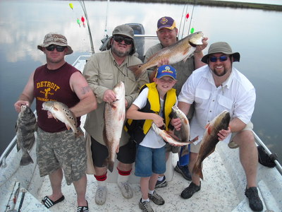 Big Stan Easly and son Chad in on leave from Iraq along with friends Jermy, Dave and His son Cade had one thing on their mind, REDFISH! At that is what they caught. Stan set up the trip and called me to ask if we could fit in a 5th person 10yr old Cade I said no problem if it means getting a young one out fishing we will make it happen. Boy did it happen. Cade was a machine he caught the first fish the biggest fish and a tagged redfish all on the first stop he had a blast all day we all did. It was great day fishing for redfish in Hopedale good weather and the fish were biting . The box was full to the top well before noon and we called it a day. It was my honor to have a USA soldier on the boat the day after Memorial Day thanks Chad for all that you and all our troops do! I salute you.