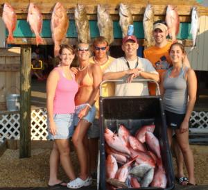 A really fun trip with these three couples. We had the music loud on the back deck just like they wanted. This trip was all about fun and fishing. We had a nice catch of red grouper, red snapper, gag grouper, triggerfish and vermillion snapper. We look forward to having them back on the Getaway. See the two pics below.