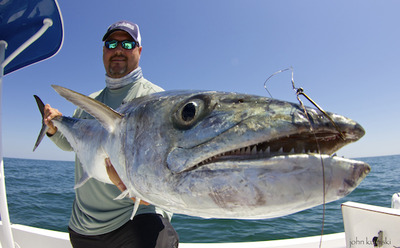 Tom spotted some commercial kingfishermen. We went out and joined them and got two nice kings by slow trolling. Then a cobia came swimming by. Danny got that, too.
