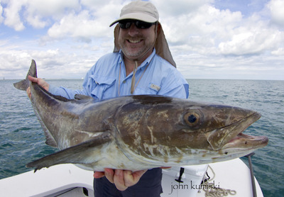 On Monday Scott Radloff and I went out of Port Canaveral hoping to fish a cobia or tripletail. We found some flotsam and there was a tripletail under it. I tossed a shrimp and a few minutes later he was mine. Then Scott got one. Then we each got another one.