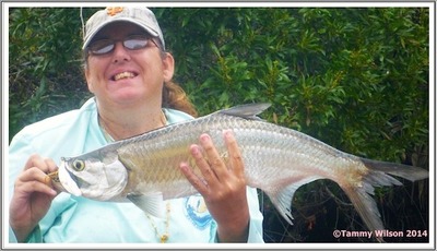 Then Tammy took me through a portal into another dimension. In this dimension there were tarpon rolling like crazy. I thought maybe she'd brought me to Hell for a while, since every strike led to a miss. No, it was just incompetence, because I finally caught one, on a small gurgler. Then she hooked and broke one off. Then she got one. Then I got another one. Then she got another one. Of course in between there were lots more misses and jumped-off fish. And then, in the manner of tarpon everywhere, they shut down. But it had been an amazing hour.