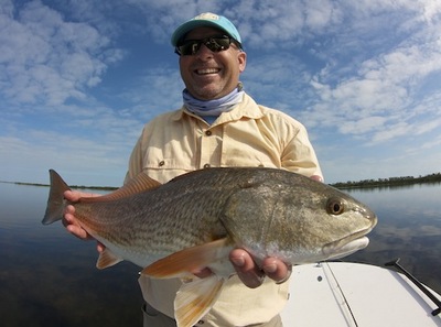 On Tuesday Dr. Ken Unger, from Calgary, did some Mosquito Lagoon fly fishing with me from the Mitzi. Although the sky was overcast for much of the day, until about 1 PM the lagoon was slick calm. There were a lot of fish around, just lying around. I would have expected tailing everywhere but no, they wouldn't do that. We ran over a lot of fish.