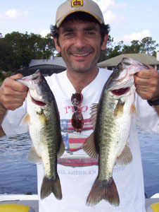 Spent a few day out on a private body of water with Franky V and Eric, the guys fished half a day in the morning and we broke for lunch and returned to fish until 7pm. Open water areas had seen schooling action pretty much all day long with steel shad catching some good numbers. Franky was slow rolling a spinner bait over a brush pile and managed a few good keepers off of it. Shoreline and dock areas had seen some slower action, but a few good bass fell to the old trick worm. Water temperatures and air temperatures have finally come down to very comfortable levels, and this has triggered some very good bass fishing action and finally some good top water action. Average catches have been running between 20 and 30 bass a day now, with artificial baits doing most of the catching.