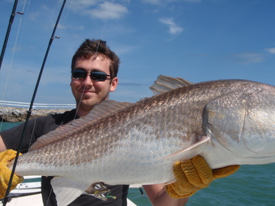 but we have a nice day ,we decide to stay and wait for the tide turn ,we have some nice poggies in the bait well,the blues was every where and eat most of the bait we caught 5 nice red, joshua come from orlando for a fishing trips is was very enjoy to fight all this fish