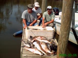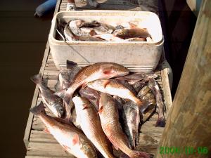 Outstanding day on the on the Beach today. Gary Migliory, Brian Horn, and Larry Buras came down for some fishing fun. Long time friends that have not fished together in years, and fish they did. The morning started of with a stop for some of Campo's live shrimp. The weather was perfect, light wind, slight overcast, and good falling tide. Our first stop of the day was in Lake Robin. The Trout were all over the place attacking anything in the water that moved. The action was fast, and the Trout were very nice with no throw backs at all, just plenty of fat 16"-20" Trout. Trout number 100 hit the ice at 8:30am. After this we moved to another spot in the marsh, and got on the Puppy Drum. Limited out on nice 17"-22" Drum in no time, along with 6 Reds. It was a fun day of fishing, and the fish box would hardly shut with all that meat in there. My guys went home with boxes full of filets and big smiles.
