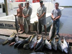 Lance had the Tony Schrdt bunch for an overnight outof Fourchon and slammed the fish as expected.. Eric Capetta called to tell me he had a great time..pictured below with 12 Yellowfin, 10 Blackfin, 2 Dorado, 1 Wahoo, 2 snapper are Matt Ledbetter, Eric Cappetta, Damien Smith, and Josh McLaughlin.