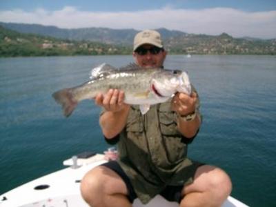 I wanted to test out the new Z-Man paddle tail lures and started fishing them weightless on the top near the edges by the cliffs and cactus point, whilst the other guys cast out senkos and flukes. There was no topwater action and after a while decided to head for deeper waters and was on my way to the S bends when I noticed a thermocline on the flats about 1.5m (5ft) above the bottom in 7m (23ft) of water. This was a good observation as when the first line went down with a brush hog we got a fish on immediately as the line went down. Then the second line went down with a curtail worm and exactly the same thing happened. These 2 fish were around 1Kg (2.2lbs) each. Things went quiet after that as we went to deeper water by known structure points and so I decided to go back to fish the suspended fish in the thermocline on the flats.