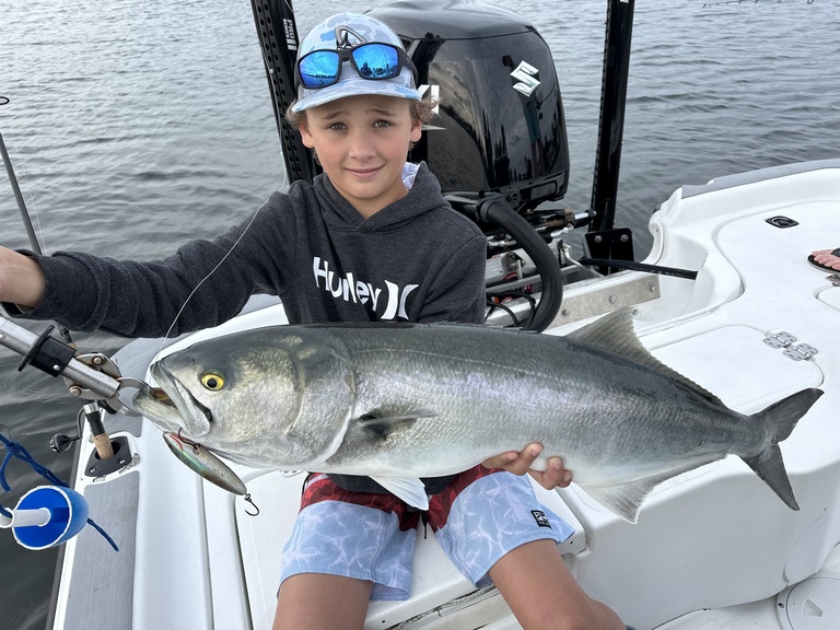 Big blues fish continue to ravage lures anglers present. Surface baits like the Rapala skitter walk offer explosive strikes for anglers fishing holes and channels. This fish are schooled up, ranging in size from 2 to 15 pounds.